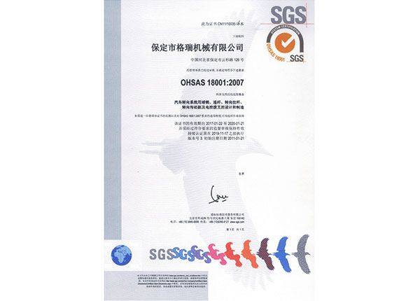 OHSAS18001管理體系證書
